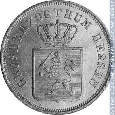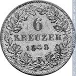 Гессен-Дармштадт 6 крейцеров, 1848 (6 крейцеров. Гессен-Дармштадт. Германия 1848г. Ag.)